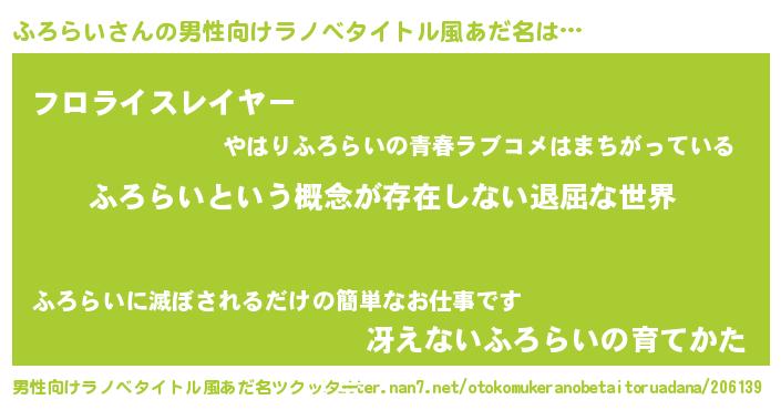 ふろらいさんの男性向けラノベタイトル風あだ名をツクッター!