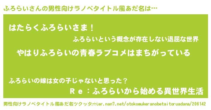 | 意味不明あだ名 | 『ふろらいフォーエバー』『自称ふろらい』 |