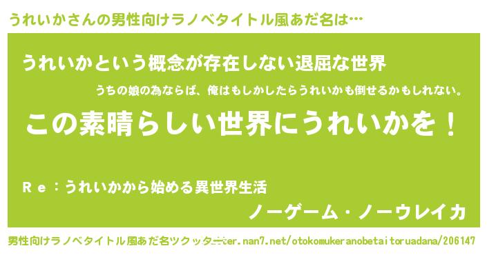 うれいかさんの男性向けラノベタイトル風あだ名をツクッター!