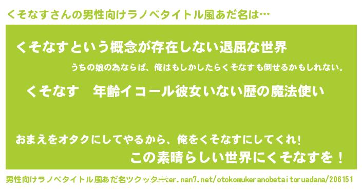 くそなすさんの男性向けラノベタイトル風あだ名をツクッター!