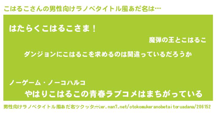 | 女子向けラノベタイトル風あだ名 | 『こはるこは平凡を望む』 |