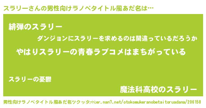 | ヒーロー風カッコイイあだ名 | 『ウルトラスラリーマン』『幻影騎士スラ』 |