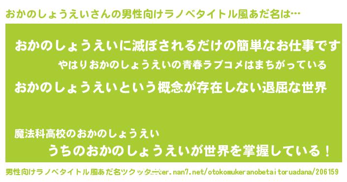 | 意味不明あだ名 | 『永久保存おかのしょうえい』 |