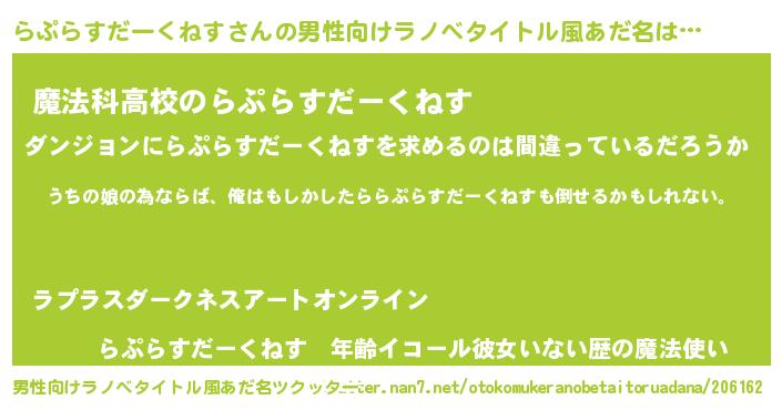 | 女子向けラノベタイトル風あだ名 | 『らぷらすだーくねすの婚約者』 |