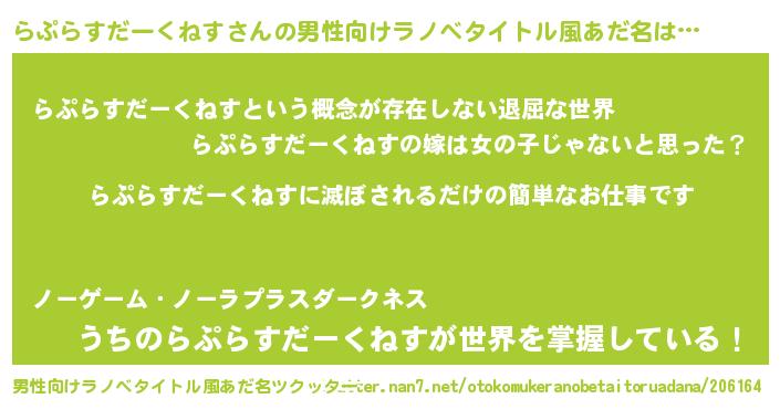 | 胡散臭い通販商品みたいなあだ名 | 『前代未聞の水素水…その名も「らぷらすだーくねす」』 |