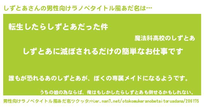| 胡散臭い通販商品みたいなあだ名 | 『運命の人と巡り会える高級そうな皿…その名も「しずとあ」』 |