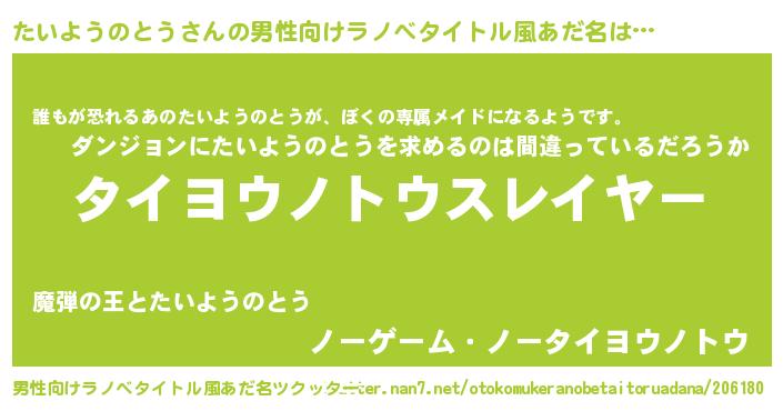| 胡散臭い通販商品みたいなあだ名 | 『絶対に幸福をもたらす健康食品…その名も「たいようのとう」』 |
