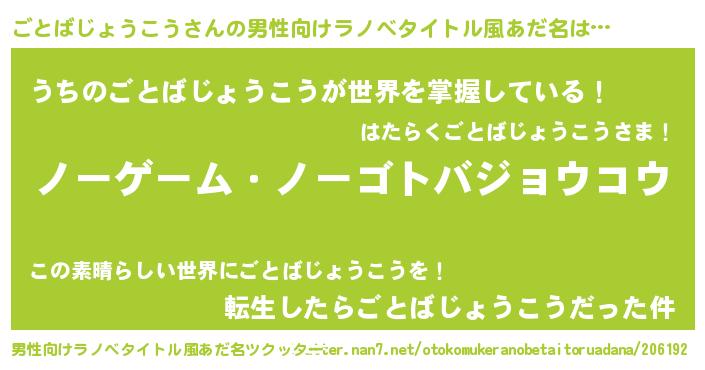| 女子向けラノベタイトル風あだ名 | 『ごとばじょうこう恋絵巻』 |