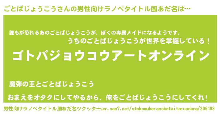 | 胡散臭い通販商品みたいなあだ名 | 『億万長者になれる霊験あらたかなお札…その名も「ごとばじょうこう」』 |
