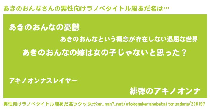 | 女子向けラノベタイトル風あだ名 | 『あきのおんな様がみてる』 |