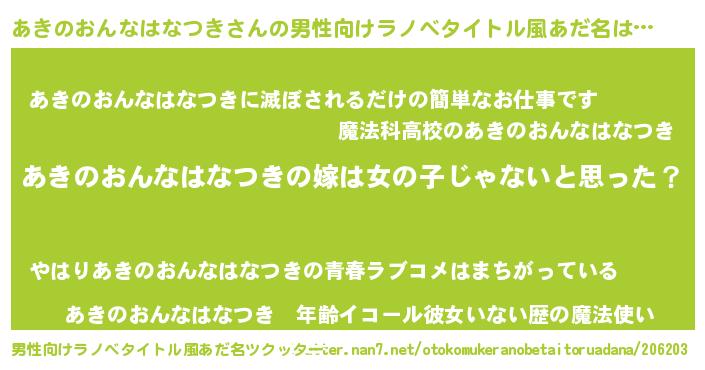 | 女子向けラノベタイトル風あだ名 | 『あきのおんなはなつき様がみてる』 |