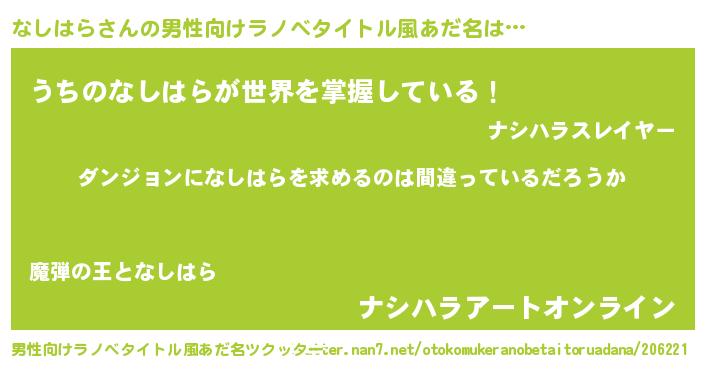 | 女子向けラノベタイトル風あだ名 | 『なしはらの卵を拾いまして』 |