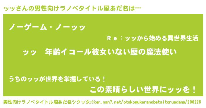 | 女子向けラノベタイトル風あだ名 | 『ッッの玉の輿計画!』『ッッ恋絵巻』 |