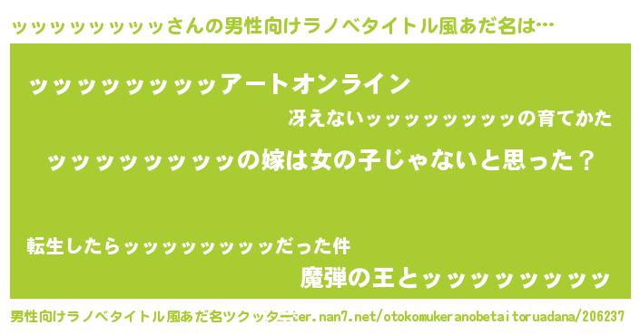 | 女子向けラノベタイトル風あだ名 | 『ッッッッッッッッの卵を拾いまして』 |