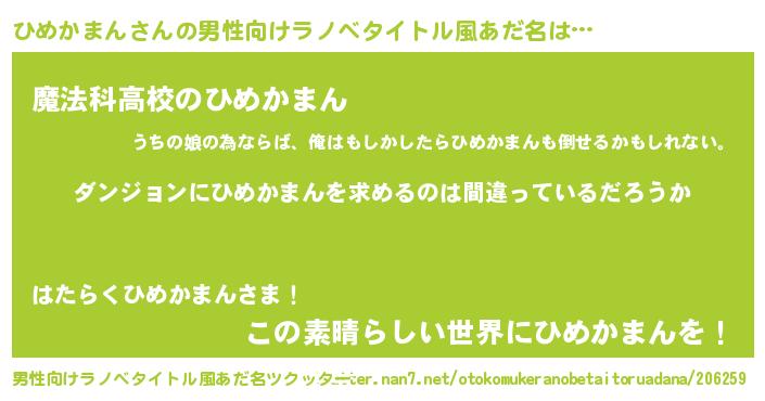 | 女子向けラノベタイトル風あだ名 | 『ひめかまんは平凡を望む』 |