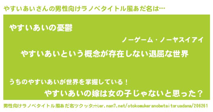 | ヘコむあだ名 | 『やすいあい(笑)』『やすにゅー』 |