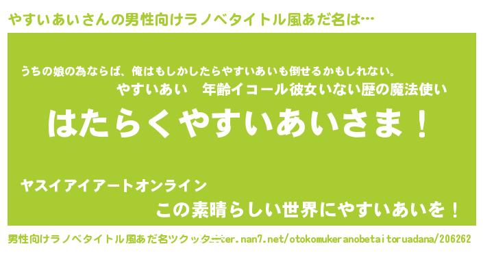 | 胡散臭い通販商品みたいなあだ名 | 『幸せが訪れる高級そうな絵画…その名も「やすいあい」』 |