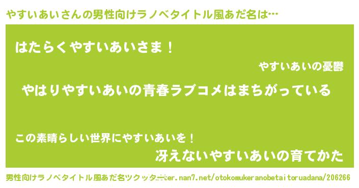| 女子向けラノベタイトル風あだ名 | 『やすいあいの雑貨屋さん』 |