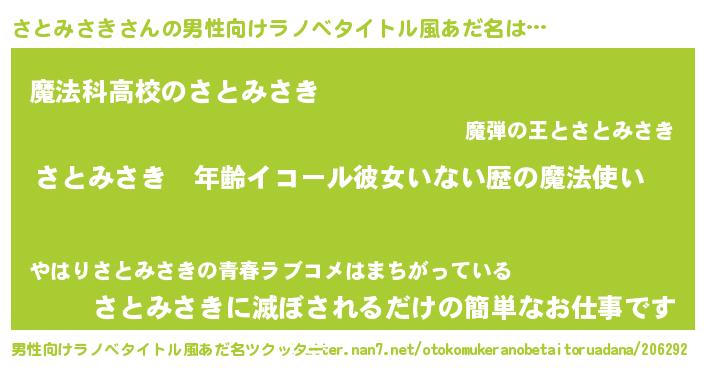 | 女子向けラノベタイトル風あだ名 | 『さとみさきの玉の輿計画!』 |