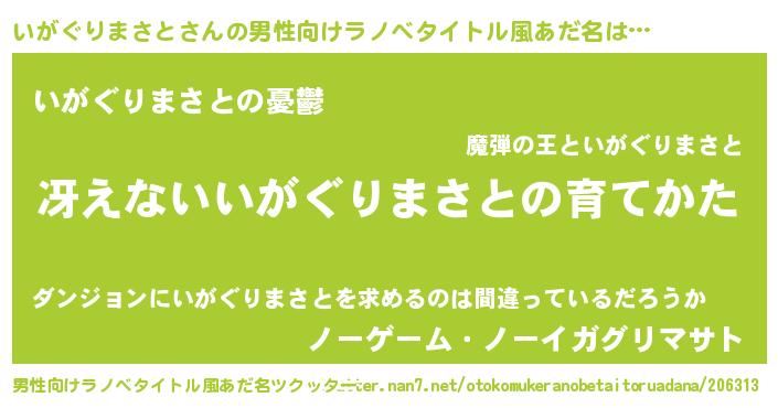 | 胡散臭い通販商品みたいなあだ名 | 『モテモテ間違いなし霊験あらたかなお札…その名も「いがぐりまさと」』 |