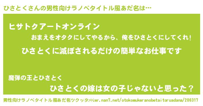 | 胡散臭い通販商品みたいなあだ名 | 『億万長者になれる水晶球…その名も「ひさとく」』 |