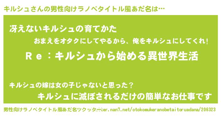 | ヒーロー風カッコイイあだ名 | 『究極戦士キルシュ』『黄金騎士キル』 |