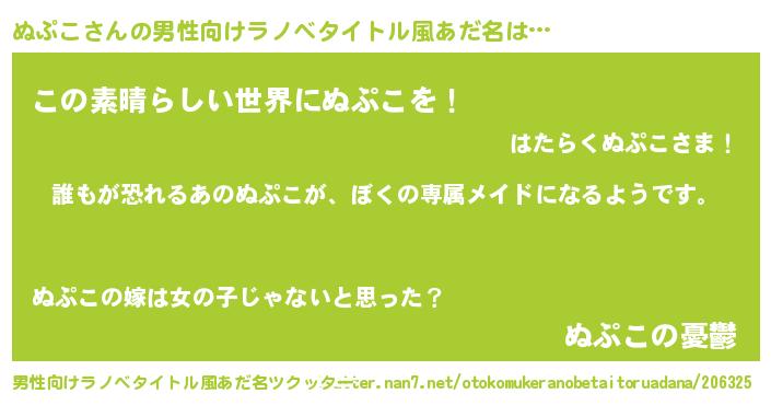 女子向けラノベタイトル風あだ名 | 『異世界でカフェぬぷこを開店しました。』 |