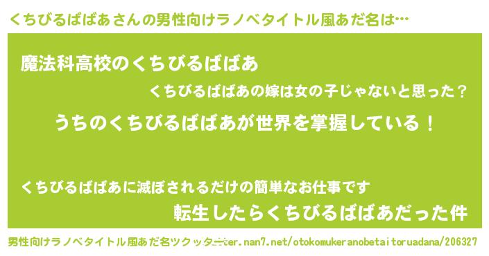 伝説のあだ名 | 『覚醒した魔法使いくちびるばばあ』 |