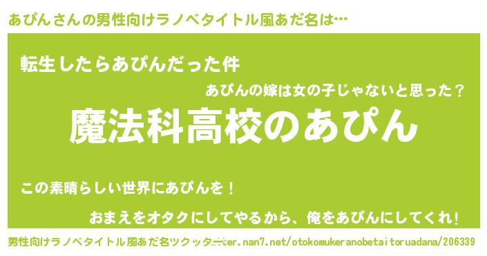 | ヒーロー風カッコイイあだ名 | 『超時空戦士アピン』『正義の使者あぴん』 |