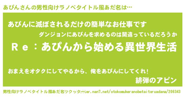 | 女子向けラノベタイトル風あだ名 | 『闇のあぴん』『横柄あぴんと宰相陛下』 |