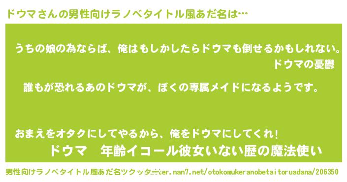 | 女子向けラノベタイトル風あだ名 | 『ドウマの契約王妃』『ドウマ伯爵の花嫁』 |