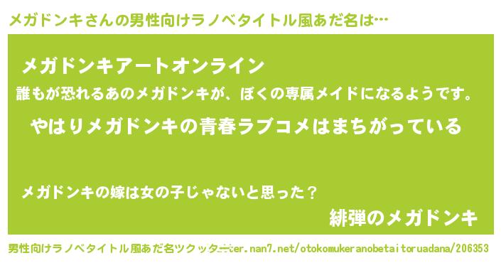 ファンタジー風あだ名 | 『エターナルメガドンキー』『メガフェル』 |