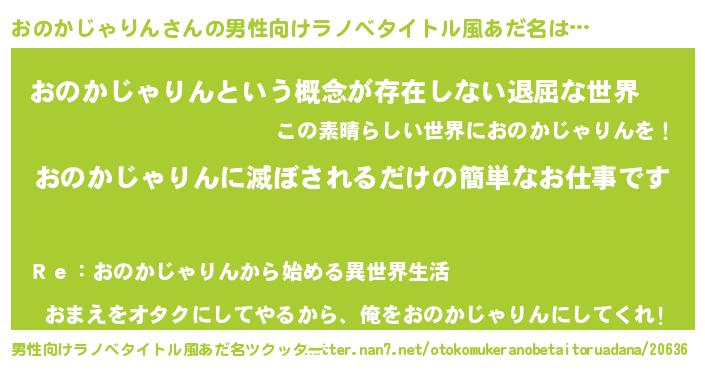 | 胡散臭い通販商品みたいなあだ名 | 『来世でも幸せになれる水素水…その名も「おのかじゃりん」』 |