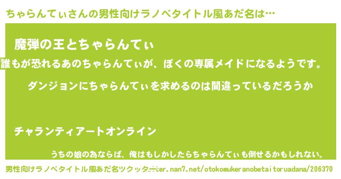 ちゃらんてぃさんの男性向けラノベタイトル風あだ名をツクッター!