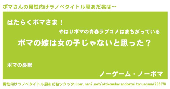 ボマさんの男性向けラノベタイトル風あだ名をツクッター!