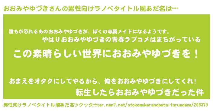 女子向けラノベタイトル風あだ名 | 『乙女ゲームの破滅フラグしかない悪役おおみやゆづきに転生してしまった…』 |