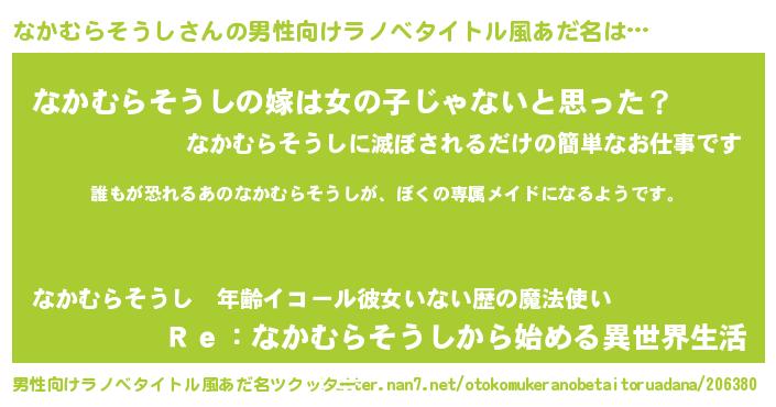 ヘコむあだ名 | 『なかむらそうし(小並感)』『なかお』 |