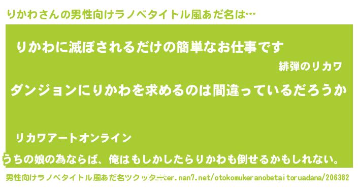 ヒーロー風カッコイイあだ名 | 『黄金騎士リカ』『ウルトラりかわマン』 |