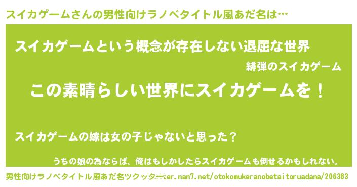 意味不明あだ名 | 『住所不定無職スイカゲーム(12歳)』 |