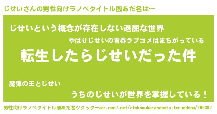 | ヒーロー風カッコイイあだ名 | 『ネオジセイ』『ウルトラじせいマン』 |
