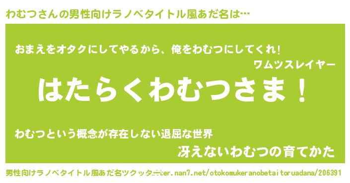 | 胡散臭い通販商品みたいなあだ名 | 『100人中100人が認めたイリジウム磁石…その名も「わむつ」』 |