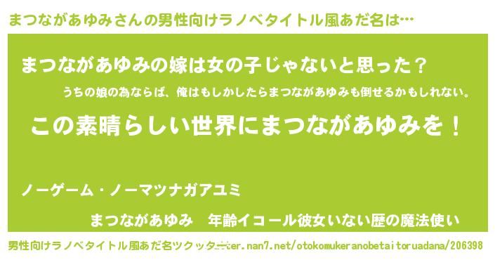 女子向けラノベタイトル風あだ名 | 『悪役まつながあゆみに転生したようですが、知った事ではありません』 |