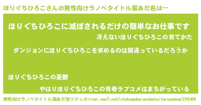 女子向けラノベタイトル風あだ名 | 『ほりぐちひろこは平凡を望む』 |