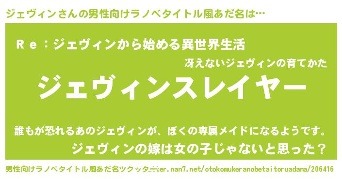 | 料理風あだ名 | 『ジェヴィンごはん』 |