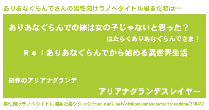 | 意味不明あだ名 | 『自称ありあなぐらんで』 |