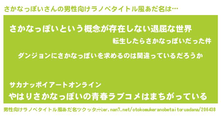 | 女子向けラノベタイトル風あだ名 | 『さかなっぽいは平凡を望む』 |