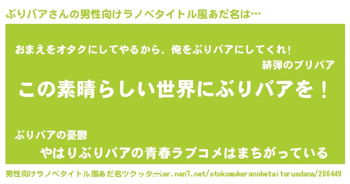 | 胡散臭い通販商品みたいなあだ名 | 『世界中を虜にした100年もののヴィンテージワイン…その名も「ぶりバア」』 |