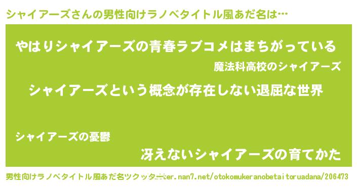 | 意味不明あだ名 | 『永久保存シャイアーズ』 |
