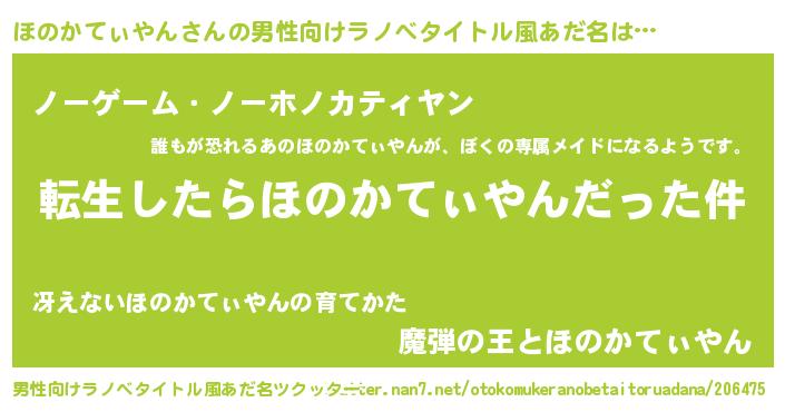 | 胡散臭い通販商品みたいなあだ名 | 『お金では代えられない隕石のかけら…その名も「ほのかてぃやん」』 |