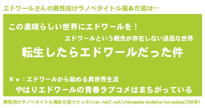 | 女子向けラノベタイトル風あだ名 | 『エドワールの玉の輿計画!』 |